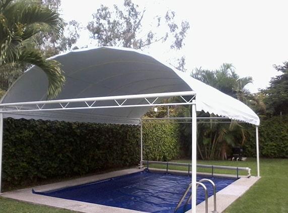 Instalamos toldos fijos y abatibles para comercio y residencia en lona nacional e importada, lona para camión, velarias, cubiertas para alberca en lona y burbuja, toldos retráctiles, motorizados o manuales con herraje de importación.